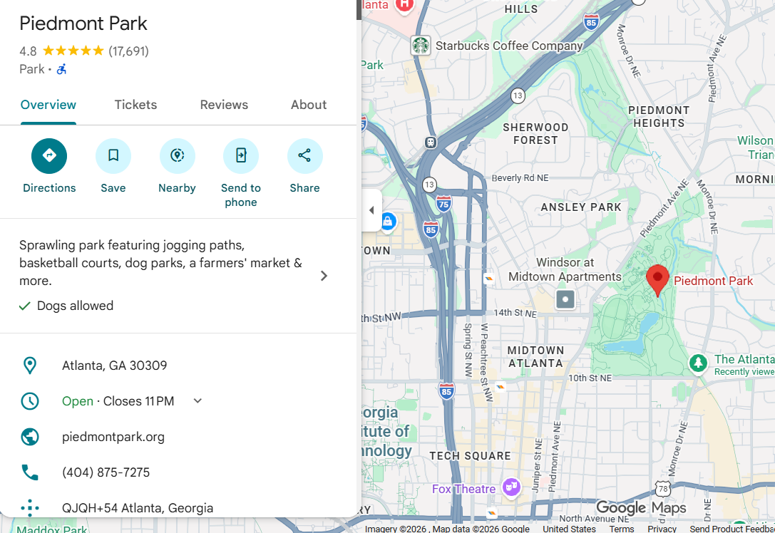 Google Maps Location for Piedmont Park